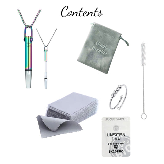 When used for anxiety, the necklace guides your breathing into a slower rhythm inhale through your nose, then exhale gently through the necklace. This extended exhale naturally activates the body’s calming response, helping to ease racing thoughts, release tension, and restore focus. It’s a simple technique that can be used anytime, anywhere.
