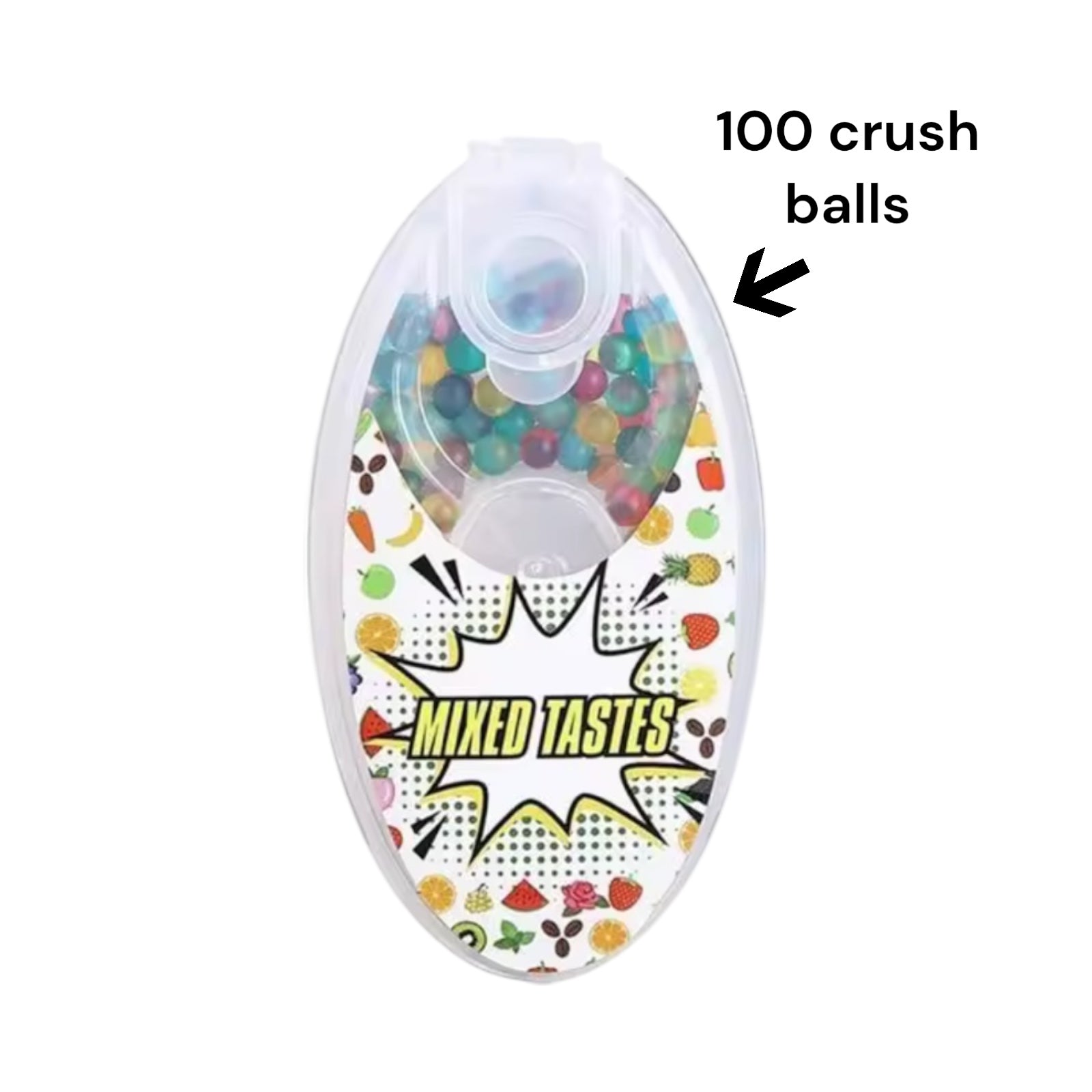 Mixed Flavour Crush Balls – a playful fusion of flavour, freshness, and fun. Each 100 pack comes with a surprise selection of delicious, aromatic beads designed to transform any filter into a personalized taste experience.